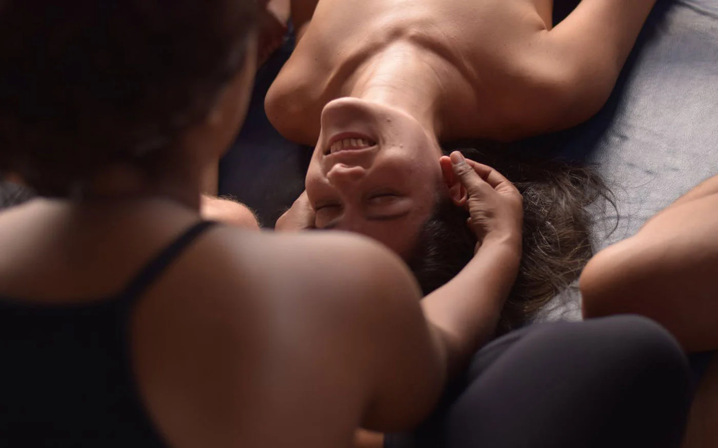 Conexão sutil e profunda por meio de respiração, olhares e toques sensoriais, em uma abordagem meditativa e energética.